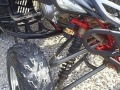 The Raptor 250 dc-4 long travel A-Arms are 3" wider per side and moved 1" forward for better handling. They come with new bushings and ball joints along with the extended tie-rods. Extended brake lines are required. Feature adjustable camber. Shown in candy red.